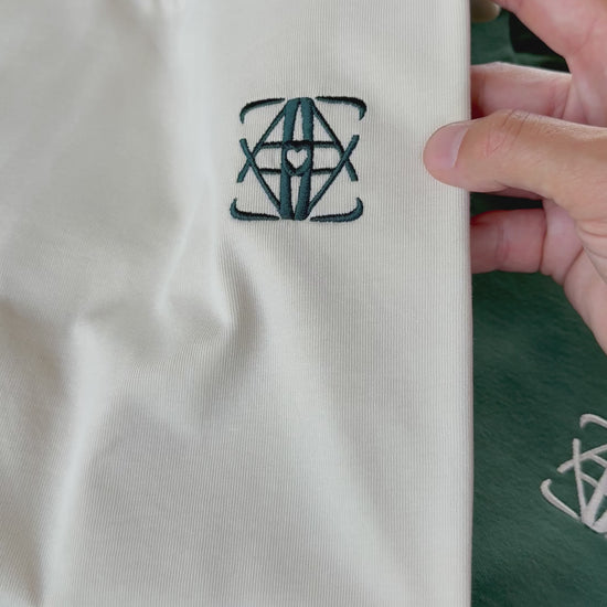 Green embroidered monogram on the chest
